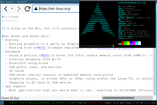 Despite this, Techflash maintains a custom ArchPOWER package repository, and maintains packages on it himself, and an unofficial rootfs is produced with these - the primary Wii-Linux distro as of current writing.